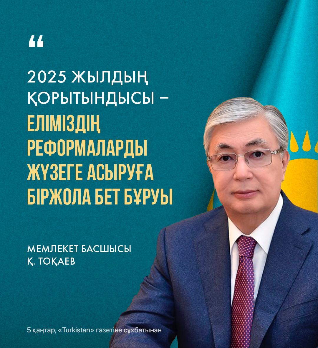 Мемлекет басшысы Қасым-Жомарт Тоқаев атап өткендей, 2025 жылдың басты қорытындысы – еліміздің реформаларды жүйелі әрі бірізді түрде жүзеге асыруға нық бет бұруы.