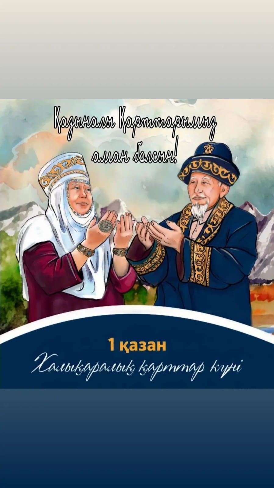 Бірінші қазан – қазақ даласында ғана емес, халықтар арасында Қарттар күні. Мейірім мен құрметке толы мереке, ата-әжелерге, аға буынға деген алғыс пен сыйластықты білдіретін ерекше дата. Атаулы күн 1990 жылғы 14 желтоқсанда Біріккен Ұлттар Ұйымы Бас Ассамблеясының 45-сессиясында бекітіліпті ғой. Ал, қазақ халқы ертеден қартын, үлкенін сыйлаған ел. Тек бүгінде бұл тәрбиені қаншалықты сіңіре алып жатырмыз ұрпаққа? «Тоқсандағы қарт бабаң, топқа жаяу бармасын» деген Бұқар жыраудың өзі. «Үйіңдегі қария жазулы тұрған хатпен тең» дегенде сол жырау.