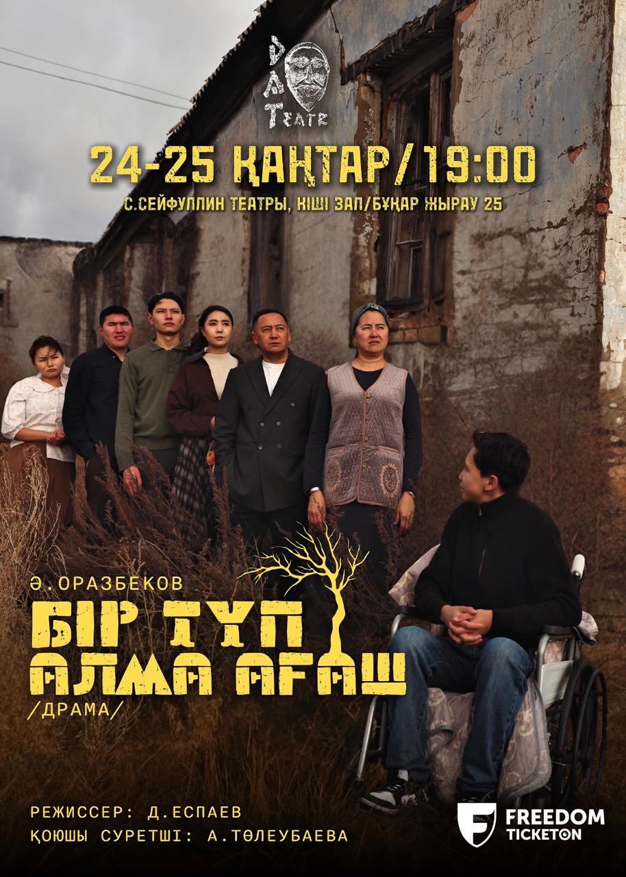 Өткен жылдың желтоқсан айында Сәкен Сейфуллин атындағы облыстық академиялық қазақ драма театрында тәуелсіз «Дат» театры Әлімбек Оразбековтің «Бір түп алма ағаш» драмасын жаңаша форматта сахналады. Халық көп жиналды. Осы қаңтарда тағы да көрермен осы спектакльді тамашалай алады.