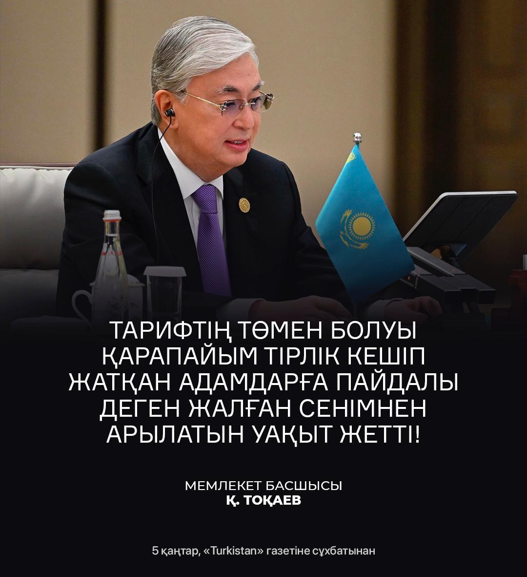 Мемлекет басшысы Қасым-Жомарт Тоқаев тариф саясатына қатысты маңызды әрі ашық ұстанымын білдірді. Президент атап өткендей, тарифтердің жасанды түрде төмен болуы қарапайым азаматтарға шын мәнінде пайда әкелмейді. Керісінше, бұл инфрақұрылымның тозуына, қызмет сапасының төмендеуіне және жүйелі мәселелердің қордалануына алып келеді.