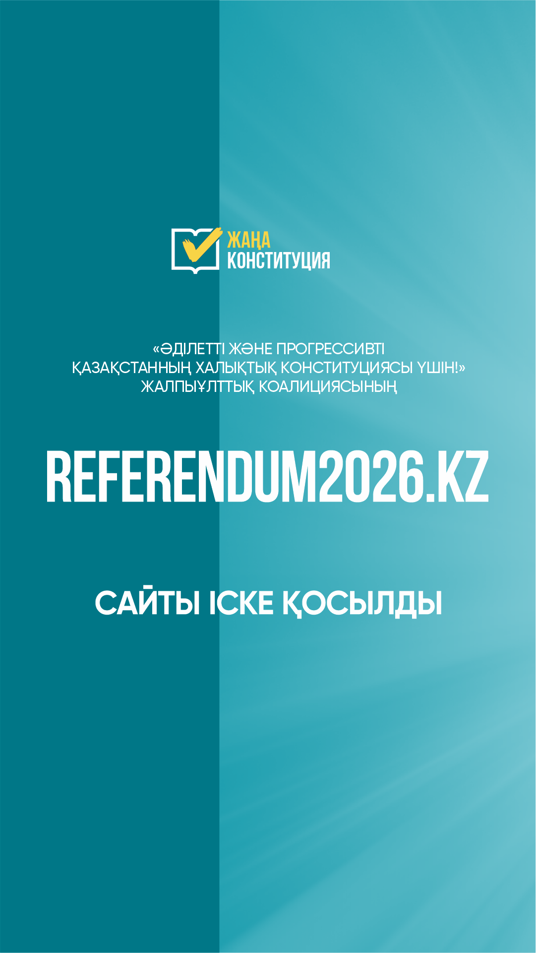 «Әділетті және Прогрессивті Қазақстанның Халықтық Конституциясын қолдау» жалпыұлттық коалициясының ресми сайты алдағы референдумға және Жаңа Конституция жобасына арналған. Ресурс қазақстандықтарға ұсынылып отырған өзгерістердің мазмұнымен танысуға мүмкіндік беретін түсінікті әрі қолжетімді ақпарат алаңы ретінде әзірленді.