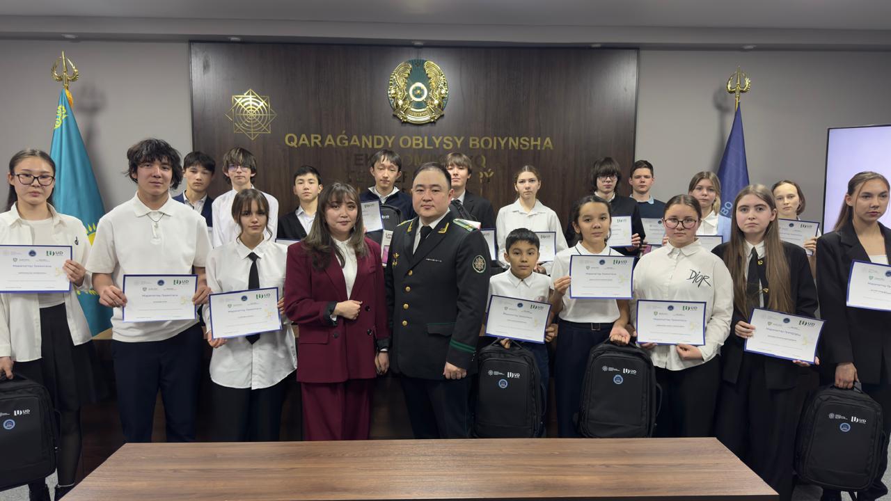 Қарағанды, Теміртау, Саран, Шахтинск қалаларының, сондай-ақ Абай және Бұқар жырау аудандарының облыстық деңгейдегі жеңімпаздарына планшеттер, рюкзактар және естелік сыйлықтар табысталды.